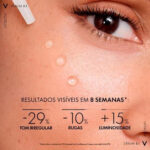 Testado e aprovado por dermatologistas, possui eficácia em todos os tipos e tons de pele. Correção diária com a dose certa da fórmula concentrada promove resultados visíveis que ficam cada vez melhores com o uso. Corrige marcas escuras. Reduz as rugas.