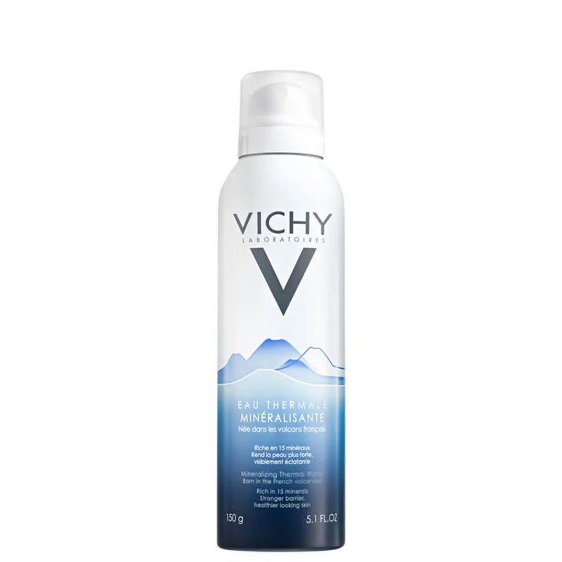 Água termal mineralizante para todos os tipos de pele e sensíveis. Vichy Eau Thermale Minéralisante refresca a pele enquanto acalma e fortifica.